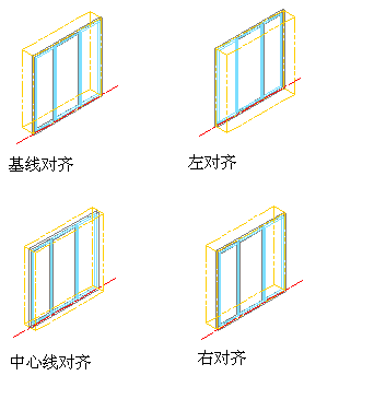 - 指定幕墙是要与创建时所用的墙的左侧、右侧、中心线还是基线对齐。