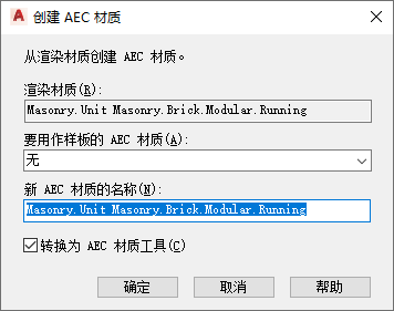 为了将 AEC 材质作为样板,请选择要使用的参数所在的现有材质定义。