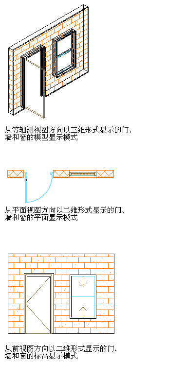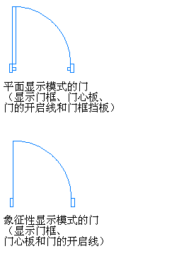 根据不同图形类型的需求,同一个对象可以不同方式进行绘制。例如,“平面”显示模式可以绘制门心板、门框、门框挡板、门的开启线构件。“象征性”显示模式可以绘制门心板、门框和门的开启线构件。尽管上述两种显示模式均可绘制门心板,但绘制方式不同。“平面”模式将门心板绘制为矩形,而“象征性”模式将其绘制为一条线。