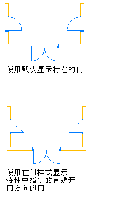 如果不使用材质来控制显示方式,可通过修改显示模式中对象的显示特性来自定义对象的外观。例如,可以关闭“平面”显示模式中的门的开向、指定门的开启线为直线还是弧线、指定打开的百分比,或者修改门的开启线的图层、颜色和线型。
