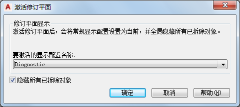 新建构造对象和现有构造对象显示在修订平面上,且所有拆除对象都处于隐藏状态。通过在改建平面类型之间切换,可以在不同的图形“视图”中工作,并避免由于编辑多个图形而引起的错误。修订平面类型的显示设置位于“改建选项”对话框中。