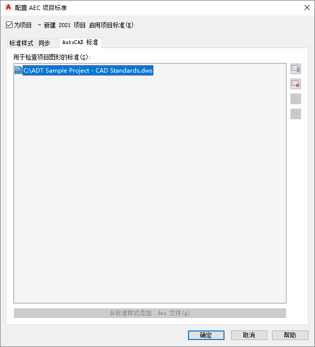 使用以下步骤可以为项目设置 AutoCAD 标准。