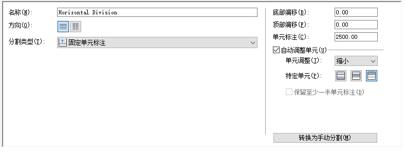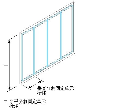 如果定义垂直分割,则单元尺寸将为竖梃之间的单元长度。如果定义水平分割,则单元尺寸将为单元的高度。
