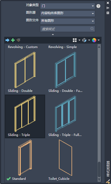 搜索对象样式,将其输入到当前图形中并启动相关命令,以启动包含选定对象的图形。