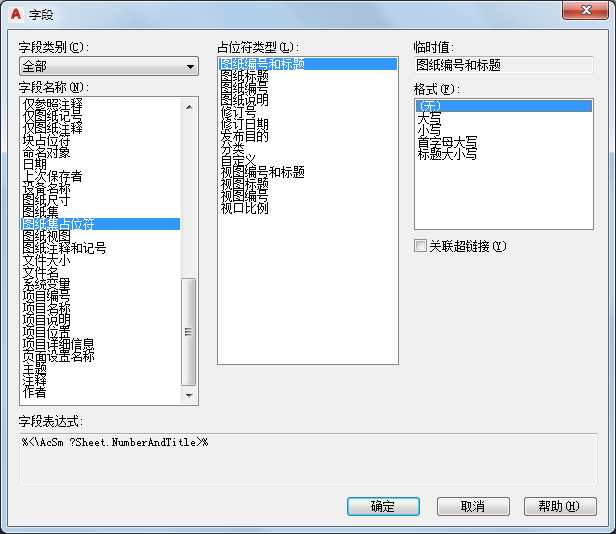 提示: “图纸集”类别包含表示视图和图纸的字段。