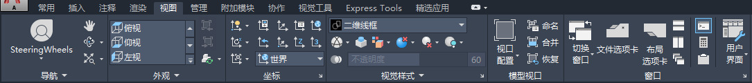 “视图”选项卡是定义和修改视图以及浏览图形的中心位置。