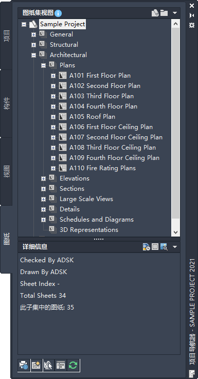 可以将图纸重新整理到图纸集视图内的不同子集中,但这样不会改变它们在类别或文件夹中的物理位置。同样,如果从“图纸集视图”的图纸子集中删除图纸,只会删除该图纸到子集的参照;布局自身及所属图纸图形不会从“Sheets”文件夹或其子文件夹中删除。