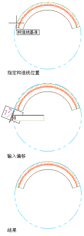 基于直墙段在指定偏移处绘制构造线