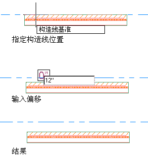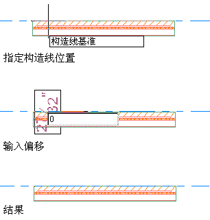 3. 单击以显示偏移指示器,该指示器可动态显示预览线和构造线基础之间的距离。