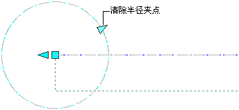 对齐线和清除圆显示在图形中的所有墙上。此外,在选择墙时,会在每个清除圆上显示“清除半径”夹点。可以移动夹点以增加或减少清除圆半径。