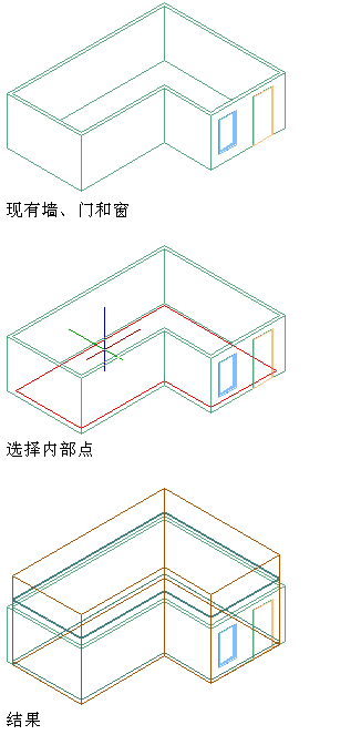 一种特殊情况是,可在图形中基于对象的轮廓生成关联的二维空间或三维拉伸空间。在这种情况下,对象轮廓将用作新空间的边界。例如,如果您基于墙轮廓生成空间,则空间将基于墙轮廓生成。