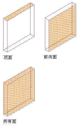 可以在材质定义内指定显示曲面图案填充的对象面。例如,可以指定图案填充仅位于对象的前侧和左侧。