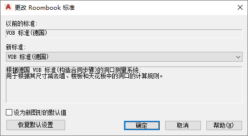 - 当您不希望更改标准并希望保留以前的标准时,单击“否”可取消操作。所有以前所做的 Roombook 计算和手动调整将保持不变。