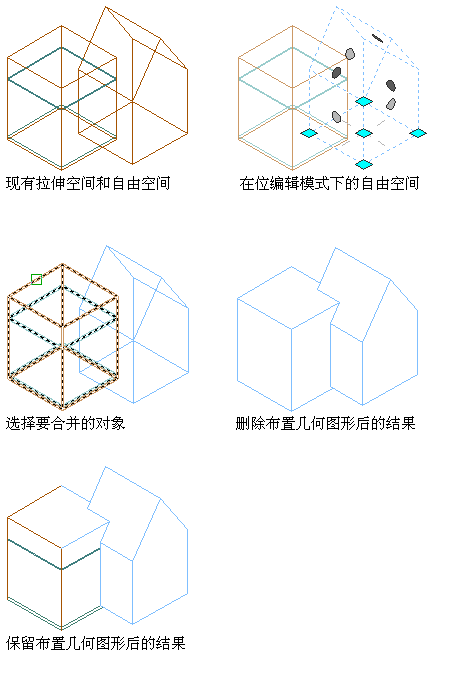 使用以下步骤可将三维自由空间与空间或其他 AEC 对象合并。可将三维自由空间与具有三维几何体的所有 AEC 对象合并。