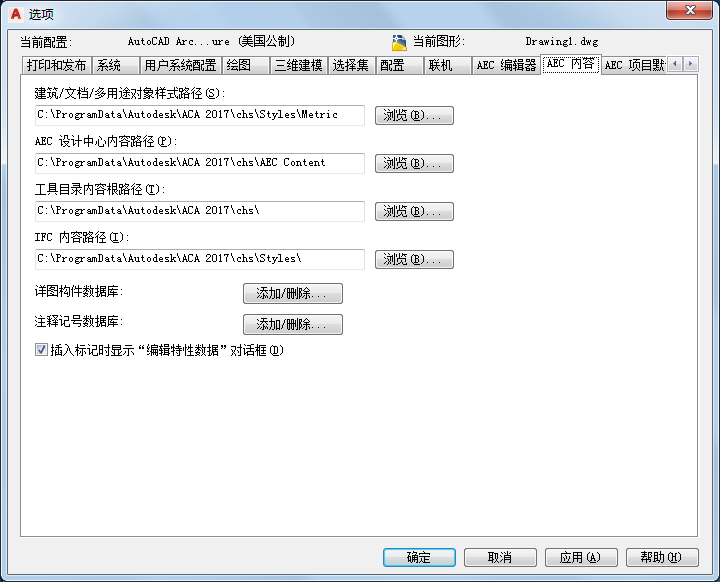 - 将自定义 AEC 内容文件存储在与默认的“Imperial”和“Metric”文件夹相独立的文件夹中。可以通过“选项”对话框中的“AEC 内容”选项卡访问指向 AEC 内容的路径。可以按照个人喜好在标为“AEC 设计中心内容路径”的位置创建任意个数的子文件夹。可通过 AutoCAD 设计中心的“AEC 内容”选项卡访问这些子文件夹,并且其行为与任何其他类型的 AEC 内容的行为相似。