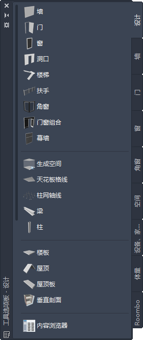 内容浏览器中的“设计工具目录” “门和窗” “门窗组合” |