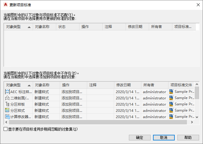 在这种情况下,在将来的更新中不会再次列出非标准对象,除非选中了“显示要在项目标准同步期间忽略的对象集”,或在“样式管理器”或“显示管理器”中删除了样式或显示设置对应的“忽略”标记,如“从同步中排除样式和显示设置的步骤”中所述。