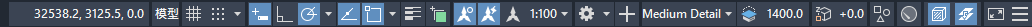 您可以切换设置(例如,捕捉、夹点、极轴追踪、对象捕捉和正交模式),或从快捷菜单中访问其他设置。显示在左侧的坐标表示光标的当前位置。