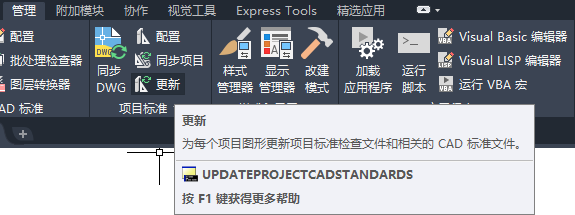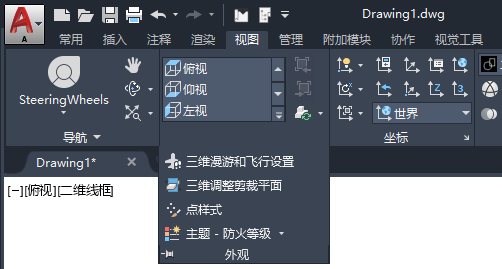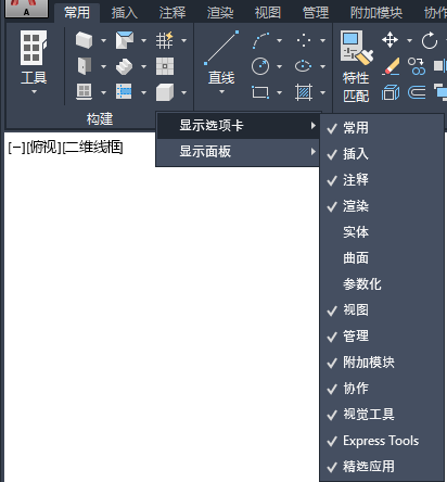 在选定的选项卡或面板名称旁边将会显示一个复选标记。