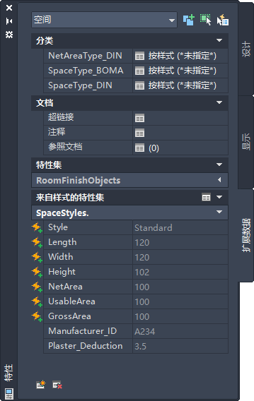 在“特性”选项板上,单击“扩展数据”选项卡。