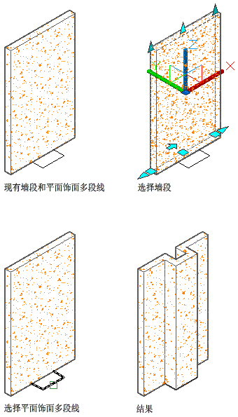 使用以下步骤可以从开放多段线创建墙饰面。您可以在墙饰面的位置绘制多段线,或者将创建的饰面投影到墙。该多段线不能是闭合的。