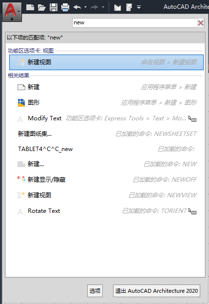 在应用程序菜单中,可以搜索一个命令,然后从匹配项列表中选择该命令。将从以下位置检索搜索结果: