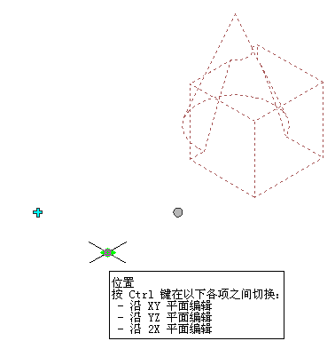 执行此过程可使用位置夹点重新定位体量编组。在“模型”视图中,位置夹点有三种可能的编辑模式:“沿 XY 平面编辑”、“沿 YZ 平面编辑”和“沿 ZX 平面编辑”。默认编辑模式是沿着 XY 平面。在平面图中,会将位置夹点限制为在一个平面内移动。