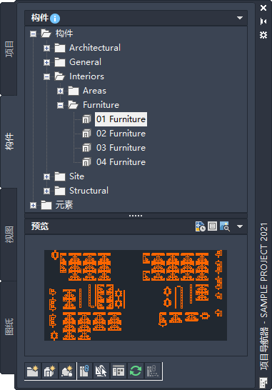 在“项目导航器”中,打开“构件”、“视图”或“图纸”选项卡。