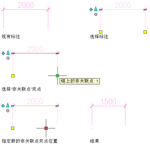 对于每个添加的点,将在尺寸界线的末尾添加一个位置夹点,同时将更新链上的标注。