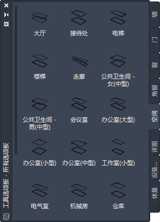 CAD 管理员或其他用户创建的自定义选项板也可包含具有按照您的项目或公司标准而自定义的空间样式和特性的空间工具。