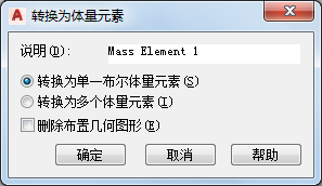 - 若要将所有选定对象转换为一个体量元素,请选择“转换为单一布尔体量元素”。
