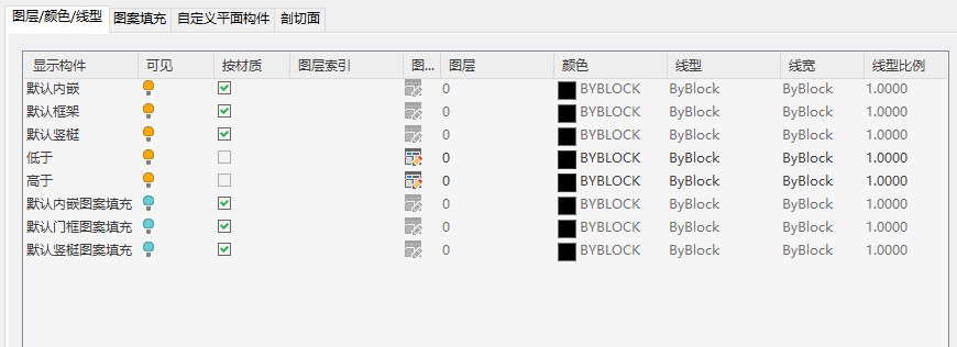 若要在平面图中更好地可视化门窗组合的元素,可以创建剖切面。主剖切面是应用包络处理与图案填充的地方。平面图将门窗组合的构件按照它们在每个剖切面的高度处显示的图形进行显示。