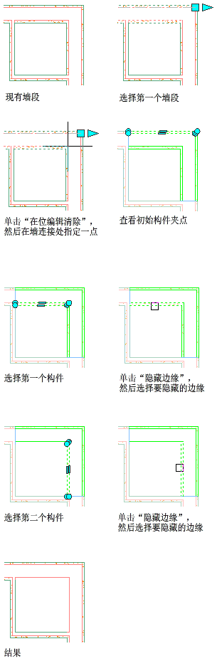 使用此过程可以通过隐藏墙构件边缘来修改墙交点。如果相交条件中有一个无法正确显示的构件边缘,这将非常有用。