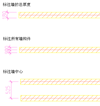 有各种选项可用于标注单个墙构件。在墙样式中,可为每个墙构件定义标注设置。可以将每个构件标注到它的一条或两条边缘以及构件中心。也可以选择根本不标注特定的构件。