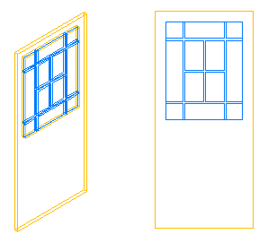 可以通过编辑门样式的要显示门窗格条的显示模式(如“模型”或“立面”模式)的显示特性来添加门窗格条。可以将门窗格条分别添加到各个显示模式中。也可以将门窗格条添加到单一显示模式,然后将其应用于该门样式的所有显示模式。在显示特性中,将门窗格条图块添加到门样式的玻璃构件中。每个门窗格条图块会成为门样式的显示构件。