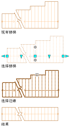 使用以下步骤可以将选定的楼梯边缘恢复为其默认轮廓。如果楼梯回到原始状态,“宽度”将恢复为原始值,而不是“变化”。这种修改将影响到踏步、踢板和梯边梁。