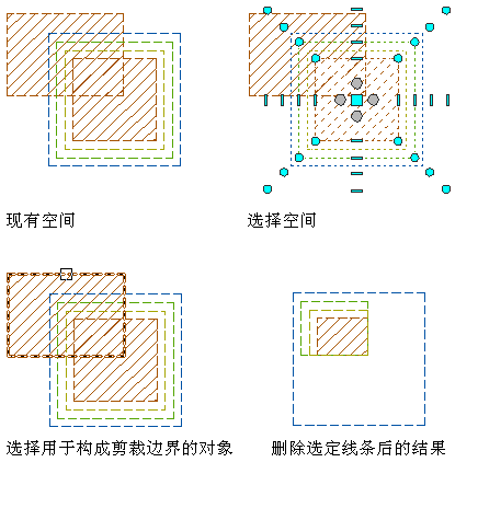 如果第一个空间的手动空间边界没有激活(显示其夹点),则该边界不会包括在相交操作中。这样会使第一个空间的现有边界保持不变,而第二个空间的相应边界将会删除。这样可能导致生成不规则空间边界。为了避免这种情况,请确保第一个空间的所有相关边界都已激活。