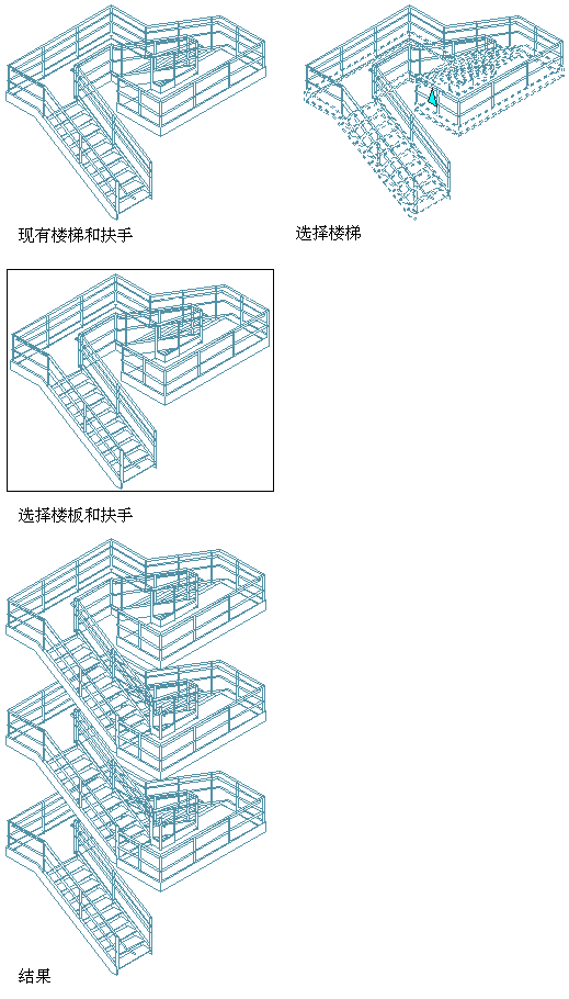 注: 如果选择将楼板包含在多层楼梯中,则该楼板应当位于所选楼梯的顶部。