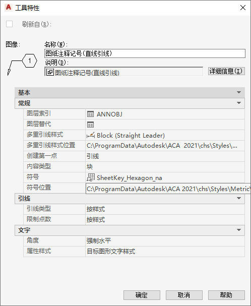 | 显示符号 | 指定为基于图块的图纸注释记号插入的符号是否同时显示在注释记号图例中。(如果“图例类型”是“基本表”则不显示)。 |
