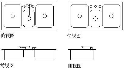 多重视口图块在每个视图方向和显示模式中可以有不同地显示。例如,表示厨房水槽的多重视口图块的俯视图显示水槽顶部,仰视图显示水槽底部;还有左视图、右视图、前视图与后视图的模式。此外,还可以为每个显示模式定义不同的显示编组,因此可以在“平面”视图中有一组视图,而在“反向”视图中有另一组视图。