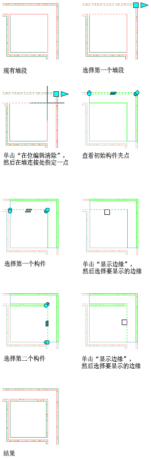 使用此过程可以通过显示以前隐藏的墙构件边缘来修改墙交点。