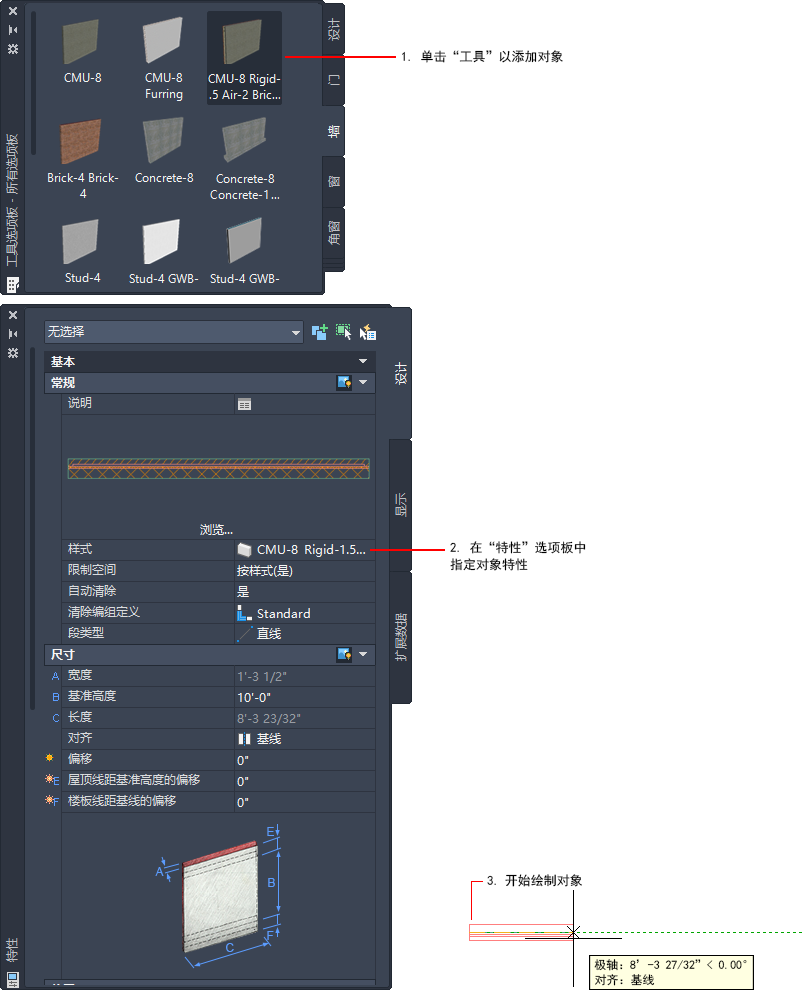 有些值只有在插入对象时才可以设置;例如,只有在插入门时才能定义门相对于其所插入墙的位置。以后不能修改现有门的位置。在“特性”选项板上,只能在插入过程中设置的值使用符号