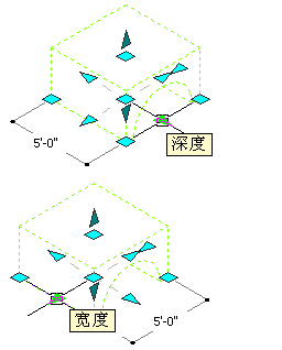 执行以下步骤可使用夹点编辑体量元素尺寸。