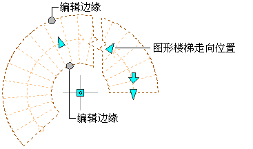 螺旋楼梯的“图形楼梯走向位置”和“编辑边缘”夹点