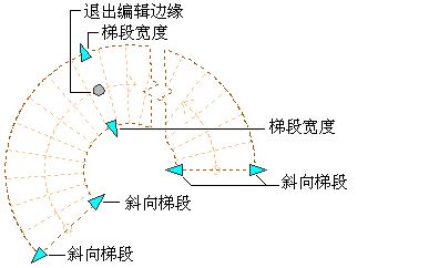 (斜向梯段) 用于修改螺旋楼梯的斜向梯段。
