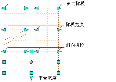 U 形楼梯的“斜向梯段”、“梯段宽度”和“平台宽度”夹点