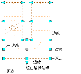 U 形楼梯平台的“顶点”、“边缘”和“退出编辑边缘”夹点