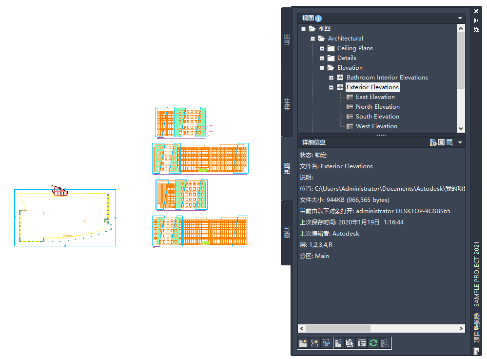 通过从“项目导航器”选项板中选择构件,并将其参照到视图图形中,可以创建视图图形。如果创建多层视图,则每个构件都以其相对层高参照,最低层插入到 Z = 0 处。