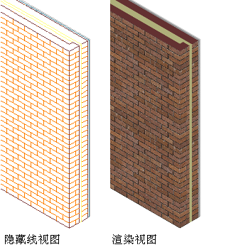 隐藏线和渲染视图中的砖墙