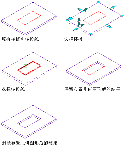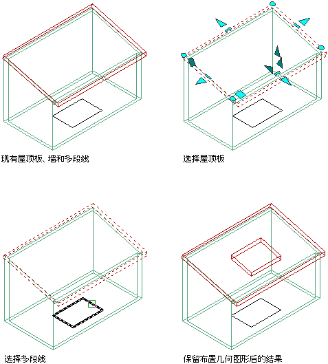 6. 注: 如果创建的孔位于外部,或者在出挑位置与楼板或屋顶板基线或周界线重叠,则将剖切楼板或屋顶板的主体,但保留封檐带和檐底板。在这种情况下,最好通过剖切楼板或屋顶板来创建孔。